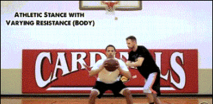 4、这个对抗训练是上一步的升级版,实战中对手会从不同方面给予你身体对抗,我们要练好下肢力量,保证身体对抗中保持重心不变。