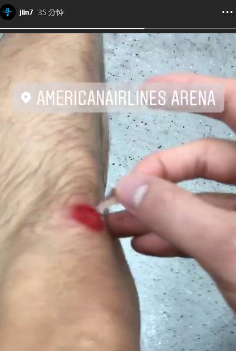 赛后,猛龙后卫林书豪在Ins上晒出了自己受伤的膝盖并写道:“他们还吹我犯规。”