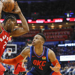 雷霆已经少了乔治,而威斯布鲁克在加时进攻并不积极,而是不断将球传给队友,可惜效果并不好。在比赛还有35.5秒时,莱昂纳德连投带罚拿下3分,猛龙以119-110领先。