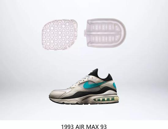 其次,我可以不断提出问题,“我们能用这项技术做什么,这些气垫是否会局限足部的运动方式以及与身体的互动方式?”以及最后,“气垫如何成为身体自然动作的一部分?”确切地说,自然界中没有任何东西是“踩在气泡上”。但是 Air 气垫单元可以移动、适应并调整,以适应施加在它身上的所有压力……这是一个真正的动态形状,允许不断地对基本概念进行重新想象和重新改造。