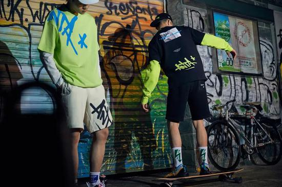 每款单品都以不同设计语言呈现,并且在细节上下了不少功夫,带来多种设计风格和更多搭配可能。以夸张的超大涂鸦字体搭配极具冲击力的配色,清爽又街头。