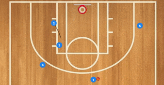 如果4号位不是队里最强投射点,或者防守人紧追过来,那2号位可以上提给3号做挡拆,3号位球员反跑到篮下接球上篮。