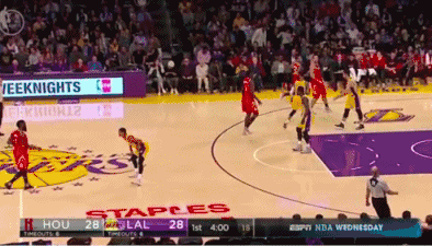 下面看一下实战示例,哈登持球推进过半场,投手安德森借助挡拆跑出外线吸引防守,但哈登并没有选择传球,于是队友进行二次挡拆往内线走,一挡二拆出空接的机会。