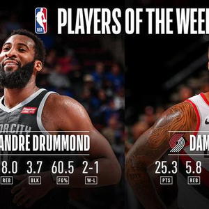北京时间4月2日,NBA公布了上周的东西部最佳球员,活塞队的安德烈-德拉蒙德和开拓者队的达米安-利拉德分别当选。