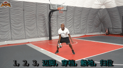 右手运球三下,穿裆,左手接球的同时,身体前倾,右手触地,期间左手要一直保持运球,然后回归原本的姿势。
