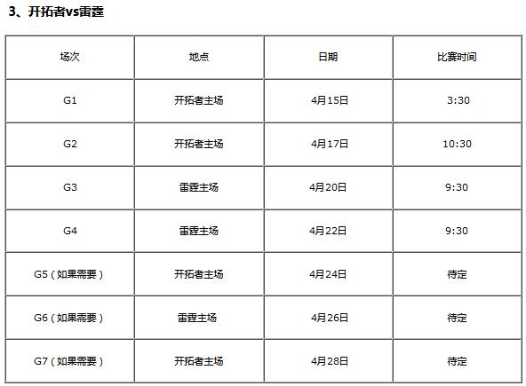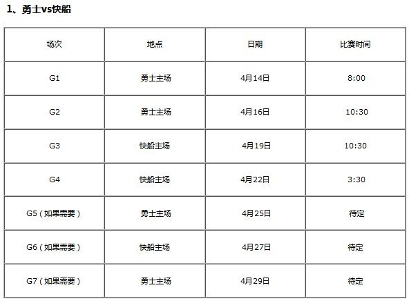 季后赛首轮赛程:周日揭幕勇士出战 火箭下周一