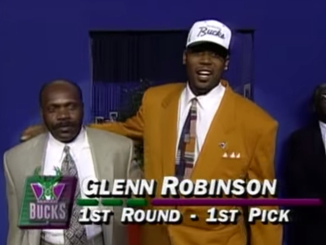 虽然1994年选秀大会上有杰森-基德和格兰特-希尔这两大超级巨星,但是状元秀还是被罗宾逊拿走了。因为他在大学实在是太成功了,他在大二赛季场均轰下24.1分和9.4个篮板。大三时,格伦的进攻火力更加生猛,他场均贡献30.3分和11.2个篮板,震惊了整个NCAA。