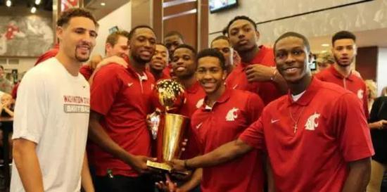 克莱-汤普森还在同外界的低估抗争着,而进入联盟之后他并没有斩断与母校之间的联系,他热衷于慈善以及校区、社区的建设,在惠特曼县——华盛顿州立大学主校区的所在地亲自参与的公益着实繁多;他也时刻关注着学弟们赛场内外的表现,为华盛顿州立大学的每一场胜负而牵动着情绪……