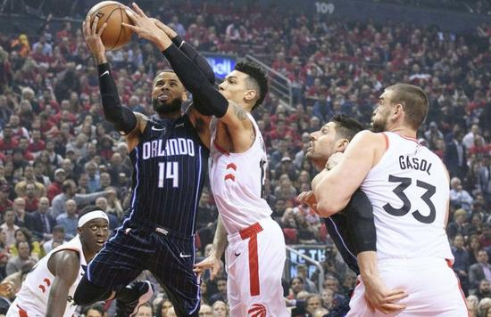 小加索尔不仅让武切维奇举步维艰,而且让魔术队的其他球员在试图攻击篮筐的时候吃到了苦头。在一个回合中,扣篮大神阿隆-戈登试图暴扣,结果被小加索尔直接造了一个进攻犯规。