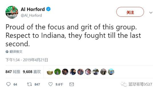 步行者再一次倒在了首轮,但他们还是获得了对手的尊重,霍福德在推特上写道:“为这支团队的专注度和勇气感到骄傲。尊重印第安纳,他们战斗到了最后一秒。”