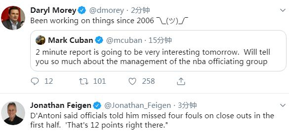 赛后,库班在推特上写道:“明天的最后2分钟裁判报告将会非常有趣,将会告诉你很多关于NBA裁判群体的管理。”