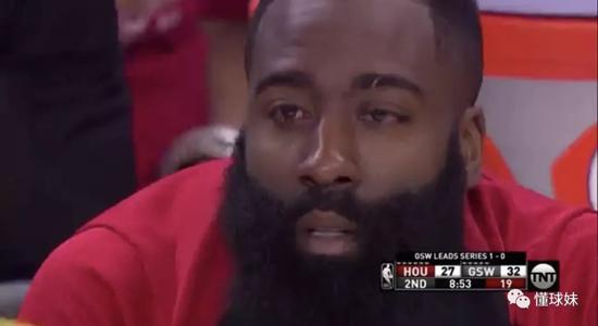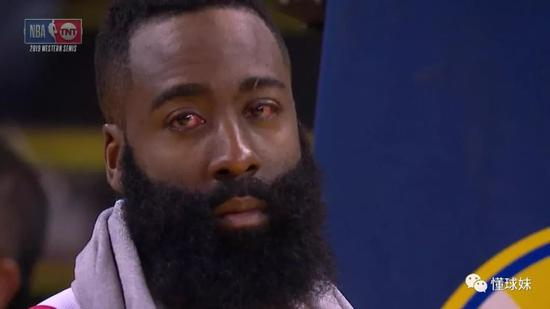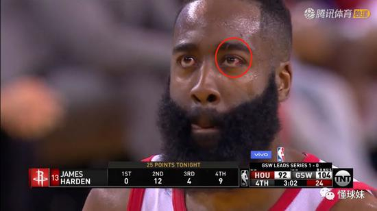 哈登则是在第一节打了一半,就被格林戳到眼睛回到更衣室,一直到第二节打了3分钟左右才回来。