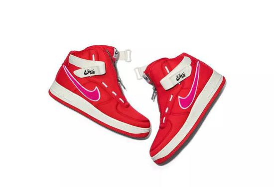 除了 CLOT 外,冠希操刀设计的 E.U。 也在今年与 Nike 展开了联名合作。双方以经典的高帮 Air Force 1 为蓝本,融入大面积的红、粉进行装扮,尼龙材质鞋面搭配摇粒绒质感钩子,显得别具质感。