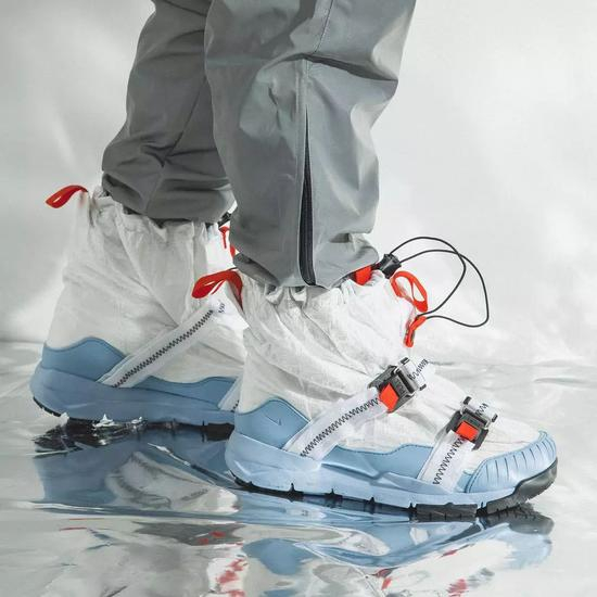 在疯狂起飞的 Mars Yard 2.0 之后,Tom Sachs 又与 Nike 合作带来更大胆的 Mars Yard OverShoe,前所未有等登月靴造型前卫十足。新增的绑带和鞋套看起来既像太空鞋又像是一双滑雪鞋,穿这样一双鞋上街回头率绝对是 100%。