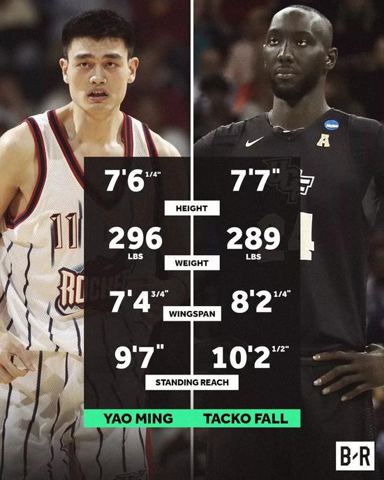 数据显示,法尔的不穿鞋身高为2.267米、穿鞋身高为2.31米、体重131公斤、臂展2.496米、站立摸高3.105米。体脂率为6.8%。这是什么概念呢?姚明的身高是2.26米,臂展是2.20米,法尔的尺寸比姚主席还大一圈。