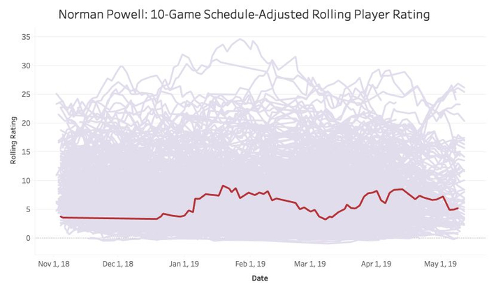 现在的猛龙队,除了洛瑞,鲍威尔已经是为球队效力最久的球员。鲍威尔在猛龙扮演的角色,类似于火箭队的戈登,两人都强壮并擅长投篮,当对手将防守注意力集中在哈登和保罗的时候戈登开始站出来接管比赛。猛龙也是如此,当莱昂纳德频频面对雄鹿的双人包夹的时候,鲍威尔需要站出来投中那些艰难的跳投。