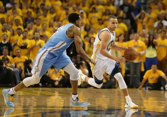 2013年库里带领金州勇士打进季后赛,那是水花兄弟和格林的首次季后赛之旅,当时站在他们身前的是,乔治-卡尔麾下的“田径大队”丹佛掘金,那年他们以57胜25负高居西部第三,面对沉寂多年,刚进季后赛的金州勇士,拥有伊戈达拉、劳森、法里德、布鲁尔和麦基等人的掘金在赛前并不担心无法晋级。