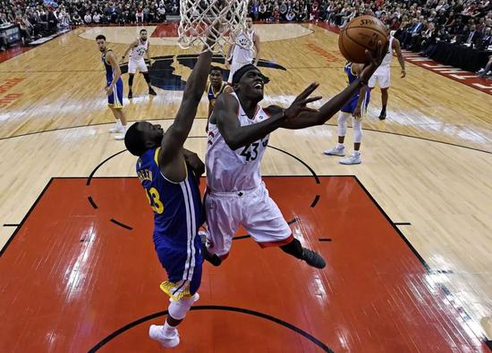 两队攻击篮下的频率其实差不多,一个20.8%,一个21.7%,可因为西亚卡姆一人的存在,猛龙的篮下命中率72.7%,勇士只有54.5%,他在第三节彻底打嗨了以后,不管是持球的中距离干拔,还是匪夷所思的高难度上篮,怎么打怎么有了。