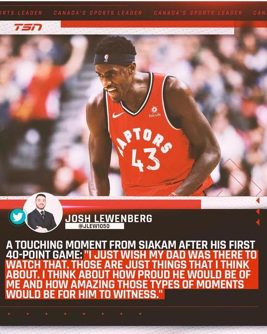 谈到5年前不幸车祸去世的父亲,西亚卡姆说:“人们一直在跟我说‘我知道你的父亲肯定会为你的表现而自豪’,而对我来说,更想能够听他亲口说这句话,那会非常酷。我有着更远大的目标,我为了比篮球更重要的东西而打球。”