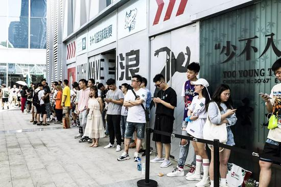 周日在锦华万达进行的第二场发售更具特色,现场人气仍然爆棚,不少玩家早早在店外排队等待。