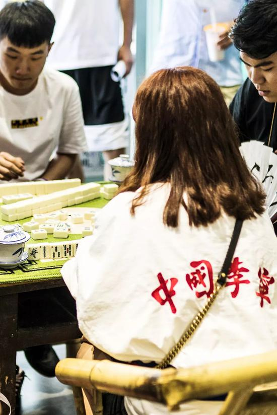 现场摆放的麻将桌吸引了小编的注意,本以为只是装饰,没想到真的搞起了‘雀圣大赛’。