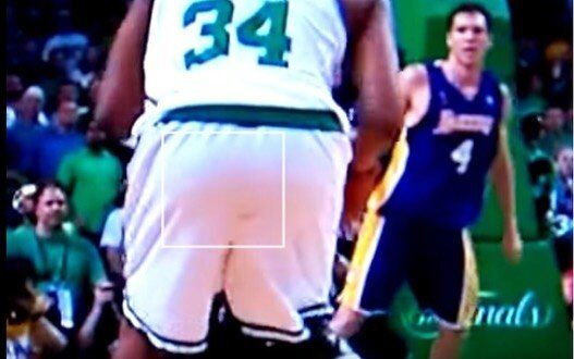 随后,美国媒体迅速找到当年比赛的赛场照片,发现皮尔斯球裤的私密部位竟然真的有一些异物的痕迹。