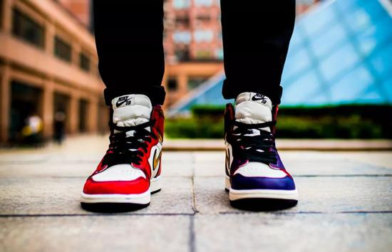 除此之外,当时的很多玩家还会在鞋面上刮出自己的喜欢的图案,打造属于自己的 Air Jordan 1。