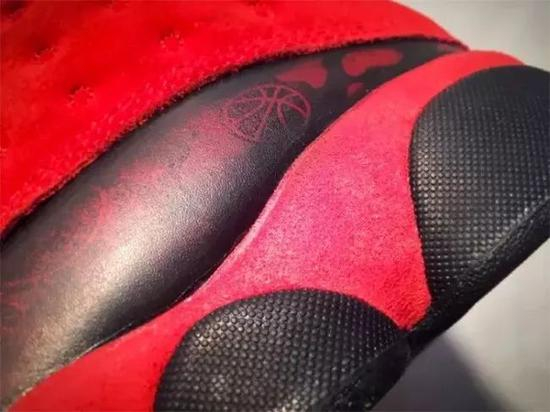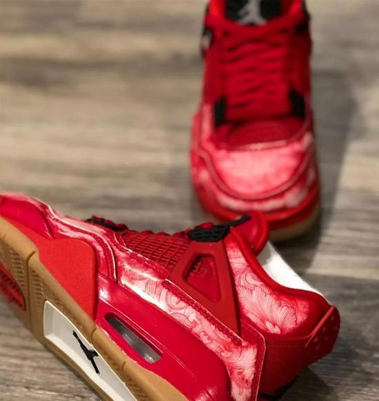 这双鞋以全红为主,而且几乎整个鞋面都可以刮出明显的鸢尾花纹图案可以说颜值相当独特。