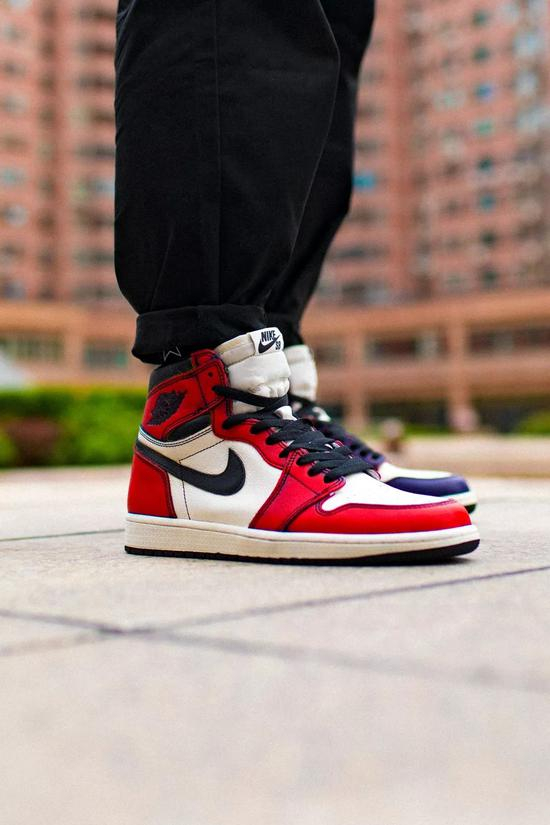 这双鞋在当时发售了黑与白两种配色,这两种配色在完全刮开后,都会呈现出一只黑红一只黑蓝的经典元年色。