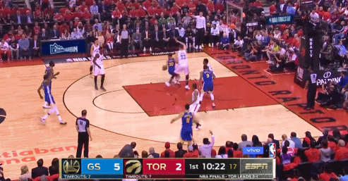 裁判在场上也出现了误判,第四节过半时,莱昂纳德明显走步违例,但裁判并没吹,而勇士放弃了防守,被鲍威尔轻松突破扣篮得分。