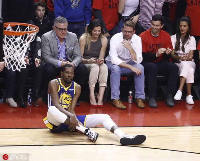 但我万万没想到的是,总决赛会以这样的方式结束。杜兰特倒下之后,克雷竟然以这样的方式同样倒下。