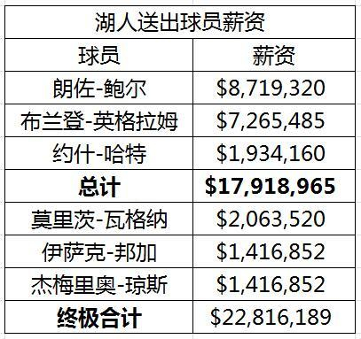 2、湖人队想要最大化利用薪资空间,需要先签自由球员再完成交易。交易之前,湖人队拥有3250万美元薪资空间,签约完成之后,湖人想要再完成交易就必须遵循薪金对等原则。