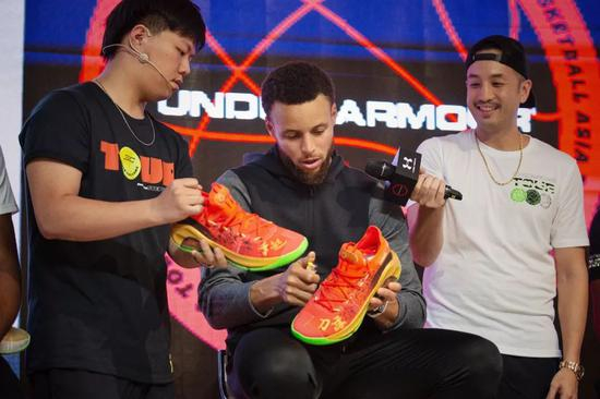 6 月 26 号,库里在北京和“大帝”恩比德、小丹尼斯·史密斯以及穆罕默德·班巴汇合,第一次组成安德玛sqUAd 和球迷切磋球技,并且探讨篮球文化。库里秀出的自然是 Curry 6 “Roaracle”,恩比德、班巴和史密斯三人则秀出了全新的 UA HOVR Havoc 2 篮球鞋。
