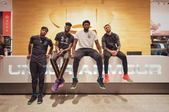 6 月 29 号白天在 UA 淮海路店铺里,四位球员谈笑风生,讲述在中国的各种有趣经历,UA 还特地为四位球员准备了代表各自不同外号的小物件。爆米花、电视机、皇冠和非洲鼓分别象征库里、小丹尼斯·史密斯、恩比德以及班巴,着实用心。