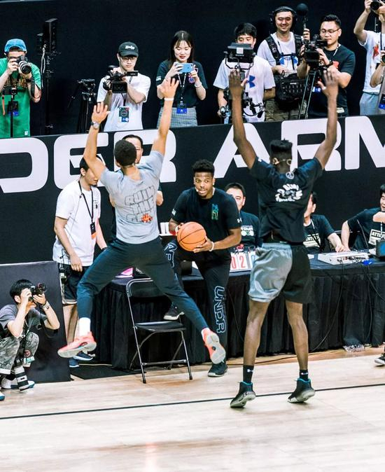 和谐的互动和访谈过后,四人通过抽签分别成为 Team U 和 Team A 的正副队长,从那一刻你就能明显从安德玛 sqUAd 的四位球员身上感觉到气氛的改变。在下午的巅峰盛典里,我们也看到了他们对于篮球的热爱以及对于胜负的执着,场下是朋友,场上是对手,这也正是篮球独有的魅力。