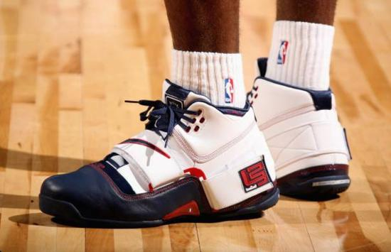 2006年男篮世锦赛,詹姆斯首次披挂国家队6号出征(2004年雅典奥运会穿9号球衣),主场球衣搭配 Zoom LeBron III USA,客场球衣搭配 Zoom 20-5-5 USA。