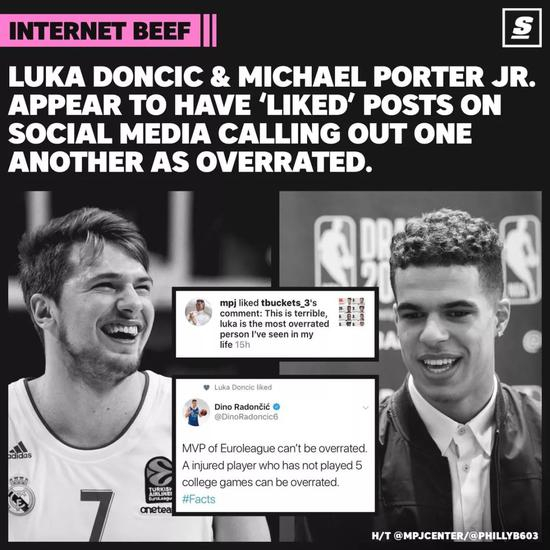 波特点赞了一条说东契奇是水货的推特,