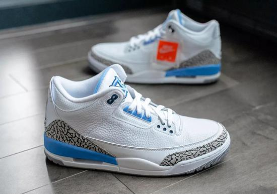 据悉明年春季AJ3北卡配色有可能会发售,但和PE版本不同的是鞋舌以及内衬的北卡标志将不会出现,仅以白蓝配色形式呈现,实物尚未曝光,图为PE版本。
