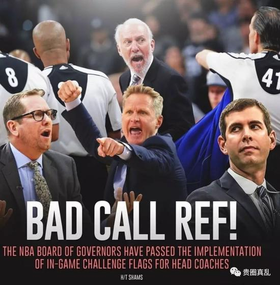 刚刚,Shams报道,消息人士透露,NBA理事会已经通过一项新赛季的新规,主教练可以在比赛中对判罚进行挑战。