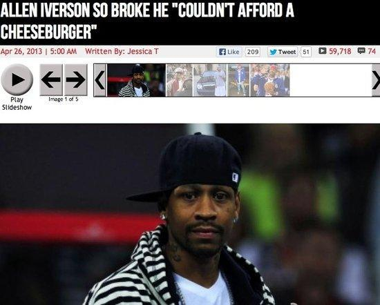好事不出门,坏事传千里。相比于幸福生活,NBA球星的倒霉事更容易被添油加醋变谣言。艾弗森破产之后买不起汉堡这件事,就经常被用来形容退役球星挥霍无度的悲惨下场。但艾弗森退役之后的生活远远不至于这么落魄,虽然曾经破产是真,但瘦死的骆驼比马大。