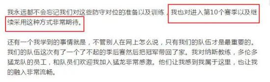 确实,林书豪在猛龙并不骄傲,季后赛只出战了8场球,场均仅贡献1.1分和0.5次助攻,总决赛也只是在最后垃圾时间上了51秒,林书豪并不是这支猛龙夺冠的拼图,说难听点就是躺赢。