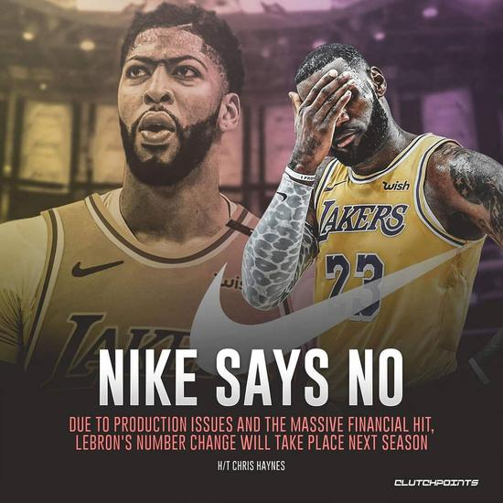 但是由于Nike已经囤积了大量的詹姆斯23号球衣,如果詹姆斯新赛季将23号变更为6号,将会带来巨大的经济损失,所以他们拒绝了詹姆斯换号的请求