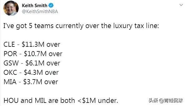 此外,记者史密斯还特意提醒大家,火箭和雄鹿目前总薪资低于奢侈税线,但也仅差100万美元。