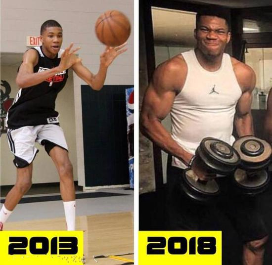 要说哪位NBA球星进入联盟前后变化最明显,那么毫无疑问很多球迷都会选择字母哥了。来自希腊的字母哥很晚才接触篮球,当时的他技术粗糙,投篮极差,并且非常瘦弱,他唯一的优点便是身高和出色的臂展。但是,在经过当时雄鹿主教练基德的调教下,字母哥逐渐成为联盟中的最大杀器,他的肌肉也以肉眼可见的增长,前段时间媒体对比他进入联盟前后的肌肉对比,手臂肌肉暴涨1倍,也是让很多球迷大吃一惊。短短5年内,字母哥从一名场均不到10分的替补成为联盟中的MVP,这其中的心酸和不易只有他自己最清楚。(ikuet)
