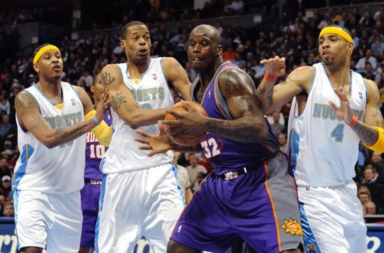 其中,米勒是一个非常合格的传统控卫,他曾在2001-02赛季拿过助攻王,加盟掘金后的3年多时间,他场均可以拿到“13+4+8”的数据;坎比则是1996年的榜眼,掘金期间他一共3次当选盖帽王,并且场均可以拿到两双数据;肯扬马丁作为2000年的状元,掘金期间的状态虽不如在基德身边的“两连总决赛”出彩,但作为首发大前也是极有进攻威胁——当然,这三人都只能算得上球星,和巨星还是有点差距。