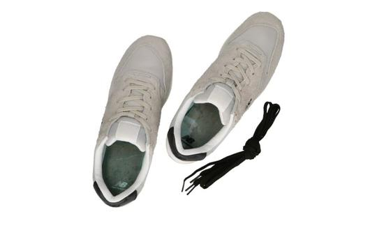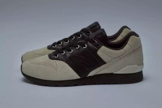 此次联名在这个路子上走到了极致,去掉New Balance鞋款标志性的鞋侧大“N”字logo,改为刺绣小“NB”logo,造型更加简约。并在质感十足的灰白色翻毛皮材质辅助下,打造满满的复古型格。