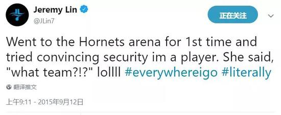 15-16赛季,林书豪加盟黄蜂。当他到球馆报到的时候,竟然被保安拦在了外面。