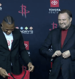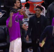 蒂格:“哥们儿你快把出场服脱了吧,球衣马上就来了。”