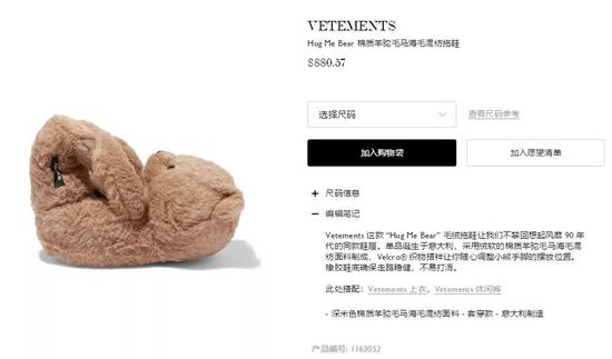 近日关于“鞋”的话题在微博上接连出现,比如前几天的#泰迪熊拖鞋#,一双定价 $990 的毛绒拖鞋引发了不小的热议,在话题的扩散和传播之下,还收获了不少人气,很多女生觉得可爱并表达了喜爱之情。其实这款拖鞋是来自 VETEMENTS 的 Hug Me Bear 拖鞋,对于经常推出“迷惑”单品的 VETEMENTS 来说,这一设计还不算“迷惑”。