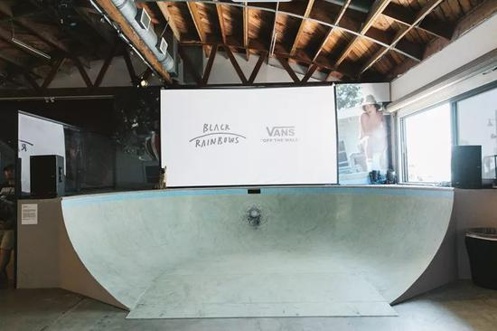 与上海一样,加州的活动现场依旧能看到,由滑板的轮子在墙上滑行呈现的 Black Rainbows。不仅展现了滑手们的超凡技术,也表达了滑手们对于滑板灵魂深处的热爱和 Vans 最具代表性的‘OFF THE WALL’精神。